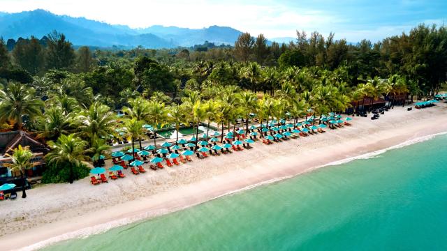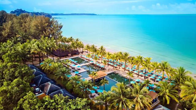 Na západním pobřeží poloostrova Khaolak, přímo u písečné pláže. Od letiště Phuket vzdálen cca 80 minut jízdy.
